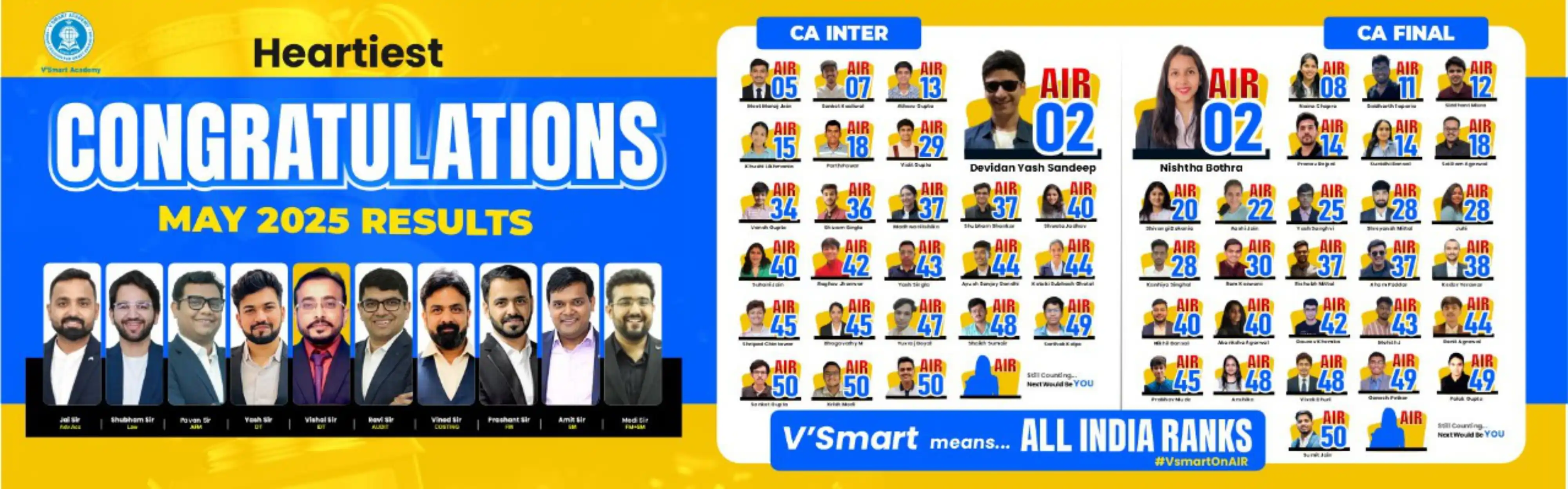 Congratulations! You have landed on a platform that provides the best CA online classes in Pune. Not only in Pune but Vsmart Academy has got the best CA online classes in India as well. To become a successful chartered accountant, it is extremely necessary that the students receive guidance from the best CA coaching classes. Nowadays, CA online coaching classes presence has also increased after the pandemic. So, for students who are willing to stay dedicated and start preparing for CA, we have got your back! We claim to give the great coaching because our team is backed with experienced and highly qualified faculties.The educators are passionate individuals who leave no stone unturned in providing valuable lessons. Our success stands on pillars of hardwork and dedication. We make sure that the students have a clarity of basics and no student is left behind with stagnant doubts. This is definitely your ideal platform to learn from experts with proper industry knowledge and appropriate teaching techniques. Get access to the best CA online coaching in Pune & India right away and start your preparation journey! Our results define our class identity among the students.